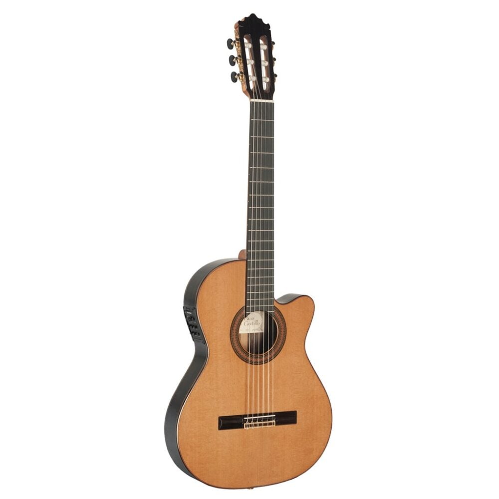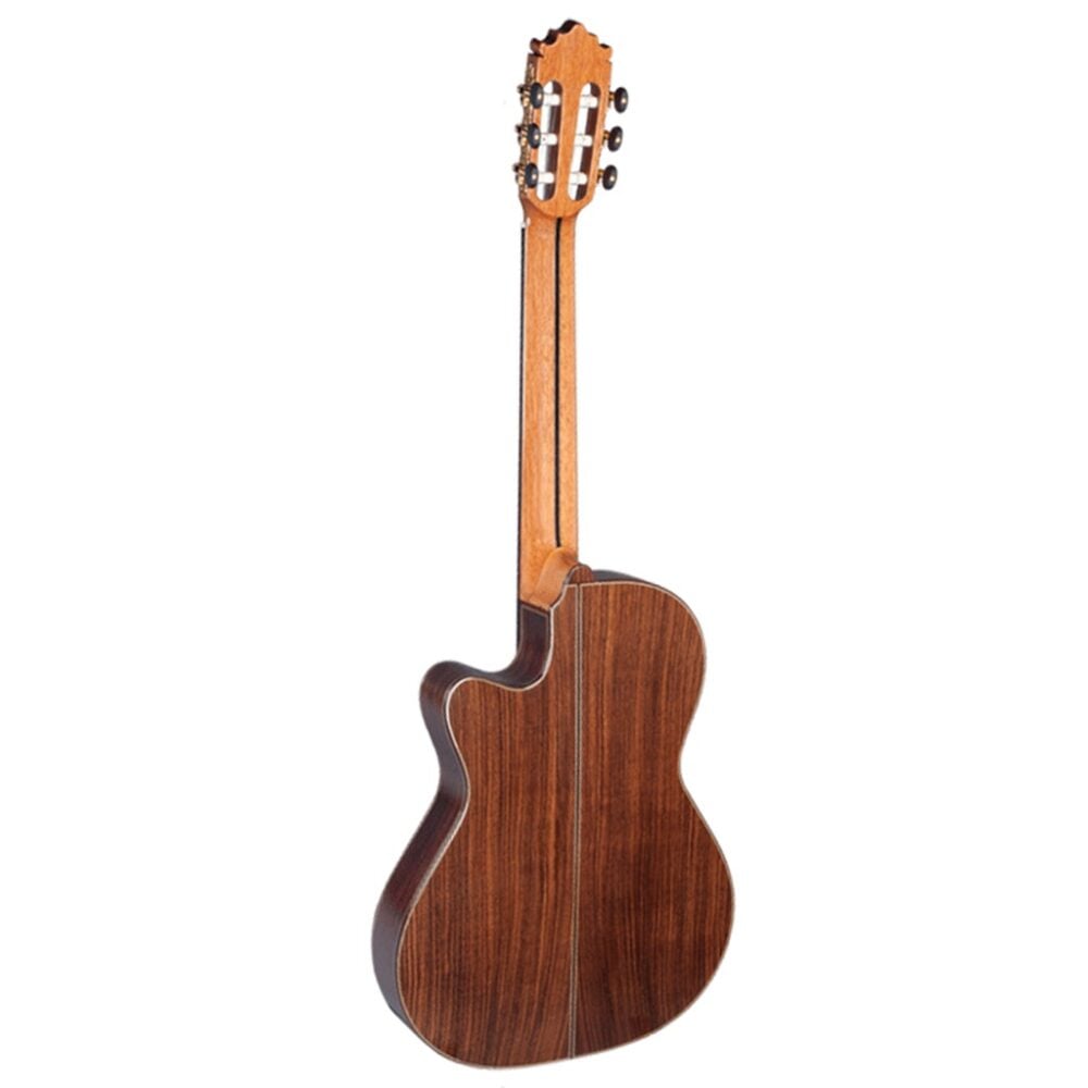 Nelle chitarre Paco Castillo rispettiamo la tradizione della chitarra spagnola, tutte le nostre chitarre sono assemblate a mano combinando la tradizione della costruzione spagnola con le più moderne tecnologie per la fabbricazione dei diversi componenti della chitarra. Per questo motivo, tutte le nostre chitarre hanno uno standard di qualità superiore a un prezzo ragionevole. Con un top in Cedro rosso canadese massello, fondo e fasce in Palissandro indiano massello, manico in Cedro spagnolo con strisce di rinforzo in Ebano e tastiera in Ebano, garantisce una superba qualità sonora, pronta per ogni tipo di esibizione.