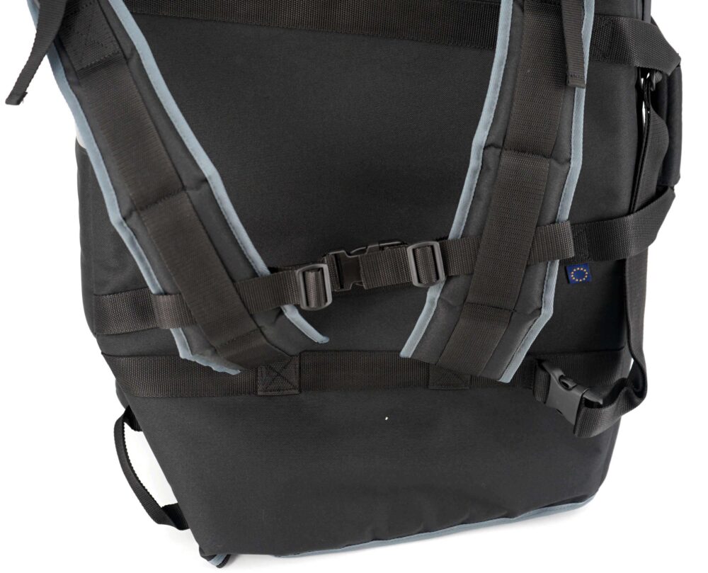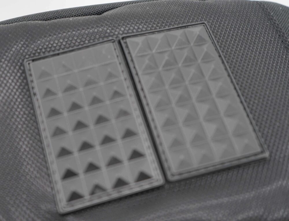 Custodia morbida in tela nera, imbottita, con chiusura della campana rigida.