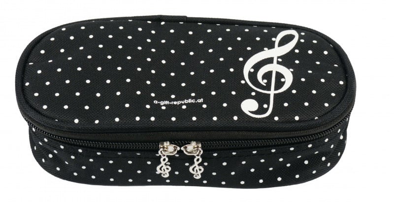Astuccio portamatite a-gift republic p1017 nero con pois e chiave di violino di colore bianco