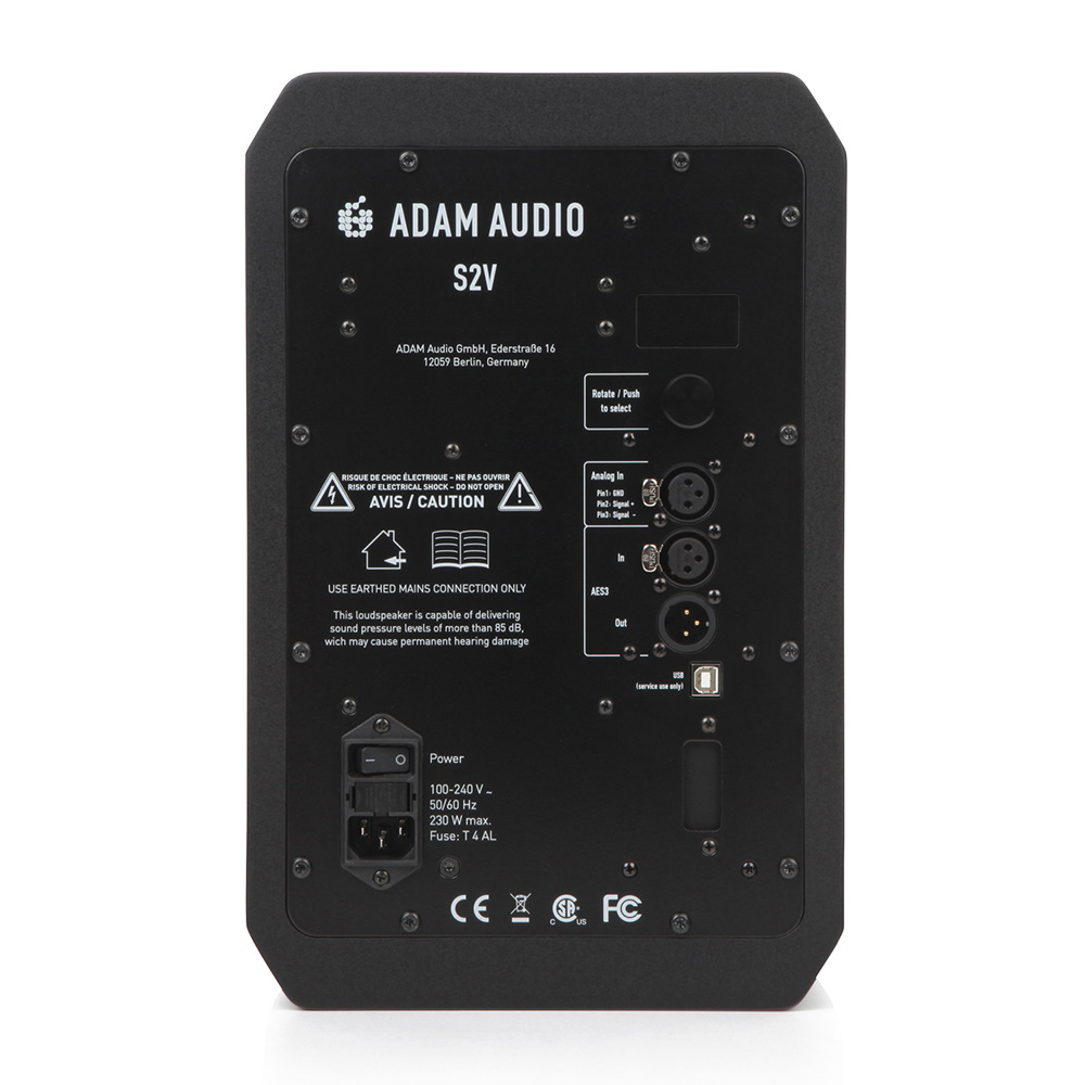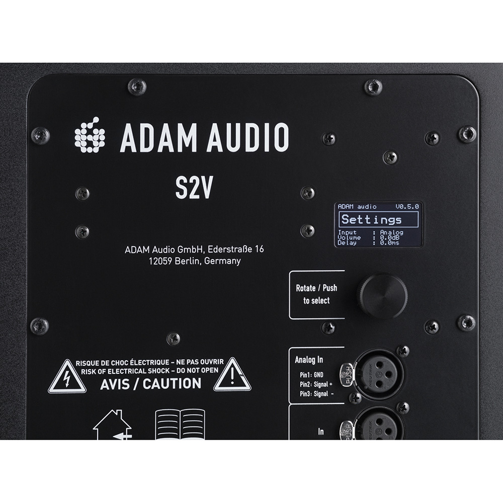 L’ADAM S2V è un monitor reference top di gamma ideale per l’utilizzo in control room medio-piccole. Il woofer da 7″ è stato pensato espressamente per la serie S di ADAM con un range di frequenza che va dai 35Hz ai 3kHz, fornendo basse potenti definite, prive di distorsione ed un incredibile range dinamico. Anche il tweeter S-ART è stato pensato per questa cassa, realizzato a mano dalla fabbrica ADAM di Berlino, viene accoppiato all’HPS-waveguide per una resa sulle alte precisa senza mai essere spiacevole ma dalla grande definizione. Nonostante le dimensioni compatte, la S2V è dotata di un potente amplificatore da 300W in classe D per il woofer mentre gli acuti sono gestiti da un amplificatore da 50W Classe A/B. Assieme producono un SPL fino a 120dB per coppia. Le casse ADAM della serie S sono dotate di un DSP interno che ottimizza il crossover per creare una risposta lineare lungo l’intera gamma di frequenza, allo stesso tempo permette all’utente di regolare l’equalizzazione e il tuning/voicing in-room. IL DSP gestesce anche una protezione dei driver sulle alte frequenzae, processa segnali digitali AES3 e aiuta nella regolazione. E’ possibile aggiornare il software tramite la porta USB della cassa. Un comodo display aiuta la regolazione e la visualizzazione dei dati.