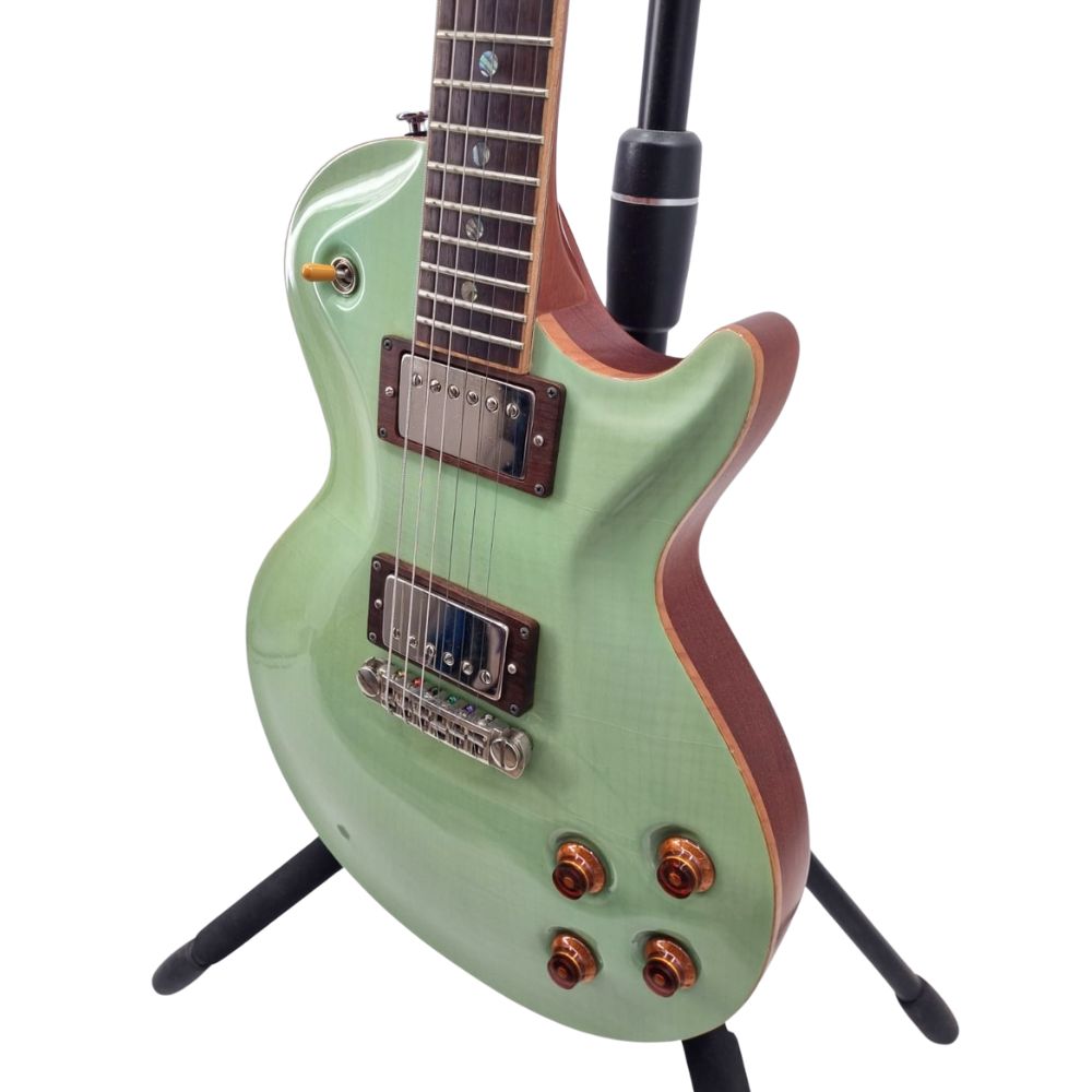 Made in Italy – 3/4 inch Master Grade Curly Maple – Honduran Mahogany body – Mahogany neck – East Indian Rosewood with Flame Maple binding – Double Action Truss Rod – Wrap Around Bridge – Agostin PAF Inspired pickups – Includes Gator Hard Case