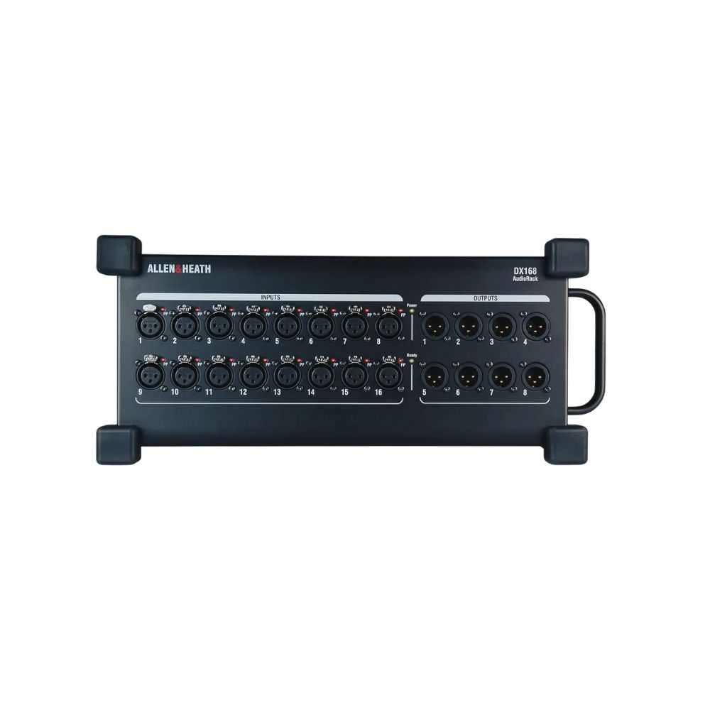 Allen & Heath DX168 è un expander portatile a 96kHz con 16 preamp microfonici e 8 uscite bilanciate su XLR, ideale per sistemi dLive, Avantis, SQ e Qu. Robusto e leggero, può essere posizionato sul palco o montato a rack, con connessione plug-and-play tramite cavo Cat5e fino a 100m di distanza. Offre porte EtherCon per ridondanza o daisy-chain e aggiornamenti firmware automatici dal mixer, garantendo massima flessibilità e affidabilità in ogni contesto live o installazione.
