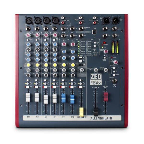 Lo ZED60-10FX è un mixer compatto, che potremmo definire ideale per piccole band, duetti o anche artisti solisti. Due dei quattro canali mono hanno input jack ad alta impedenza che possono accettare un segnale in ingresso di linea normale o un segnale più basso come quello proveniente da una chitarra o un basso con pickup passivi. In questo modo questi strumenti possono entrare direttamente nel mixer senza bisogno di DI box.