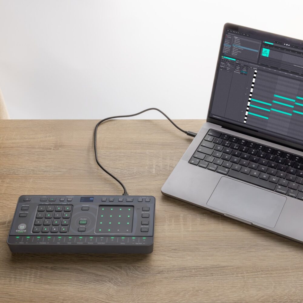- Connettività: MIDI OUT/THRU, MIDI IN, USB-C. Controlla synth e DAW con le modalità Chord Play e Chord Cruiser.