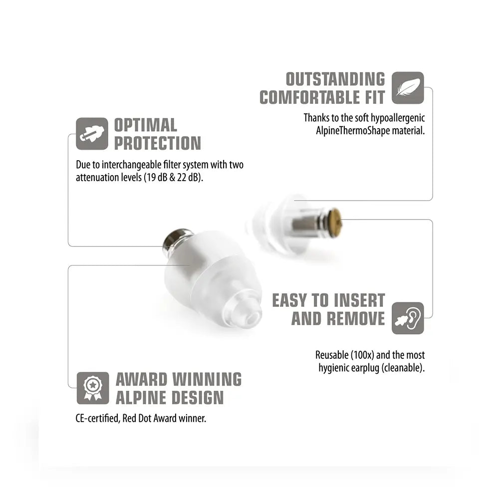 MusicSafe® offre protezione universale per il vostro udito, con auricolari ergonomici specifici per musicisti. MusicSafeC® contiene infatti 2 diversi set di filtri musicali intercambiabili che offrono diversi livelli di attenuazione: alta (dorato) e media (silver). A seconda dello strumento che state suonando/ascoltando, la posizione sul palco e/o il genere musicale, troverete il livello di attenuazione che più vi si adatta.Questi speciali filtri garantiscono protezione ottimale eliminando solamente la parte delrumore dannosa per il vostro udito e offrendo la possibilità di suonare/ascoltare la propriamusica in tutta tranquillità e sicurezza. Gli auricolari sono fabbricati in materiale morbido,flessibile e allo stesso tempo resistente. In pochi minuti, grazie al calore corporeo, la forma si adatta al vostro condotto uditivo per il massimo comfort.