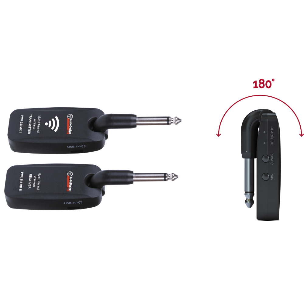 Progettato originariamente per chitarra, Audio Design PMU 5.8 MKII è stato ottimizzato per essere utilizzato anche come trasmettitore audio. Offre una trasmissione stabile e di alta qualità grazie alla tecnologia a 5,8 GHz, con una copertura fino a 50 metri in aria libera.