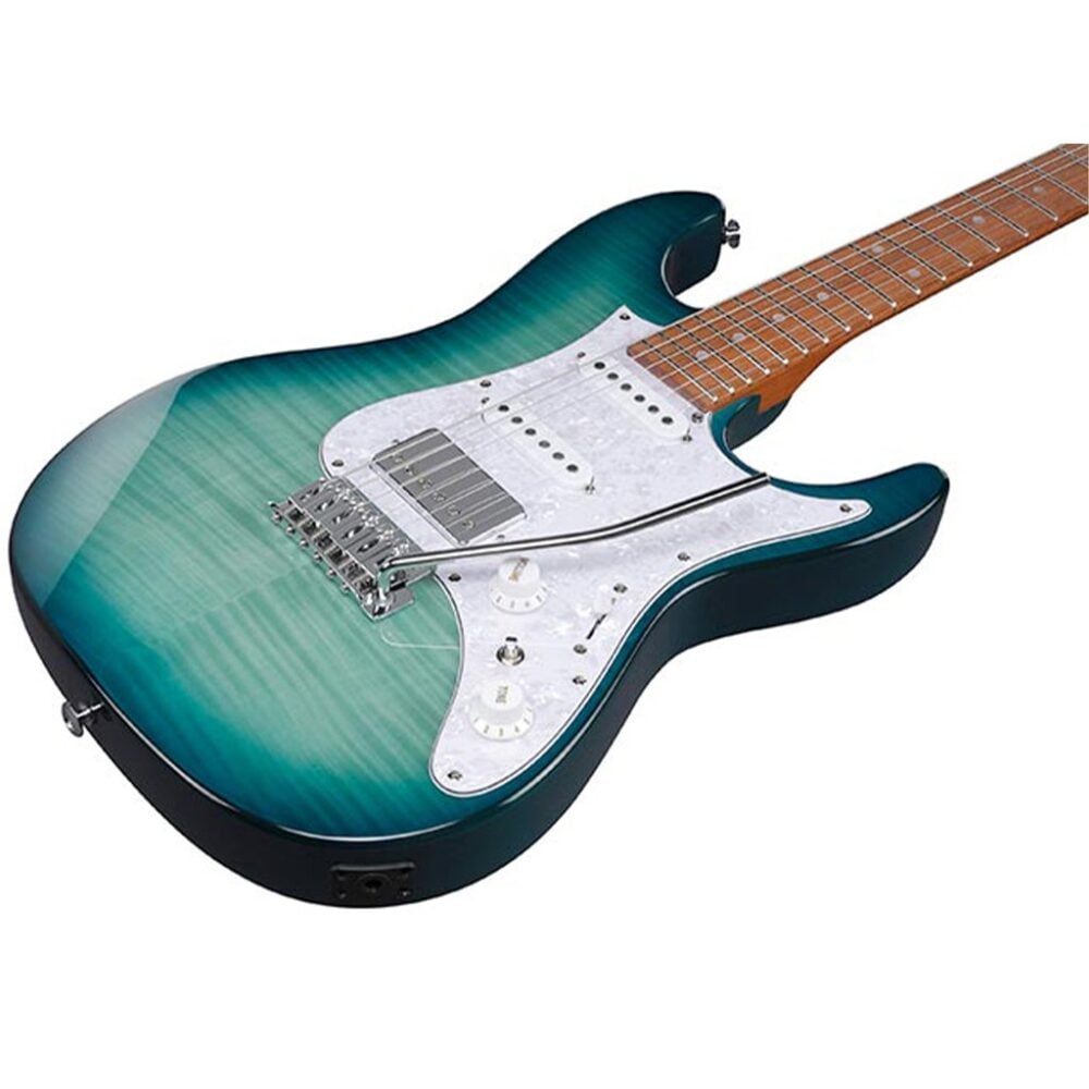 Portando l’adattabilità a nuovi livelli estremi, la serie AZ si è affermata e si è ritagliata uno spazio che varia dai più caldi riff blues ai più intensi riff heavy metal. Portando avanti questa filosofia, la linea AZ incarna l’innovazione Ibanez collaudata nel tempo con caratteristiche incentrate sul musicista, come un manico ovale e liscio, una forma del corpo asimmetrica ben bilanciata e un tallone del manico più sottile che garantisce una suonabilità senza pari. Presenta un corpo in Ontano con top in Acero fiammato, manico AZ design in Acero tostato con tastiera in Jatoba da 22 tasti Jumbo. Ancor più interessante la parte elettrica, con 2 Single coil Ibanez Classic Custom in Alnico, alle posizioni del manico e centrale. Al ponte viene montato un Humbucker ceramico Ibanez Classic Custom splittabile che, insieme ai controlli di Volume, Tono, Selettore a 5 vie e Switch aggiuntivo, offrono una impressionante varietà sonora.