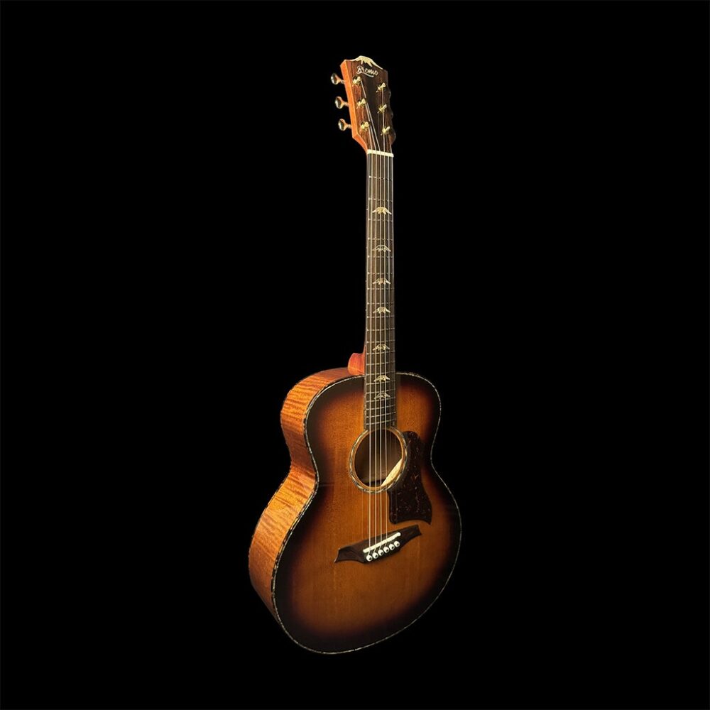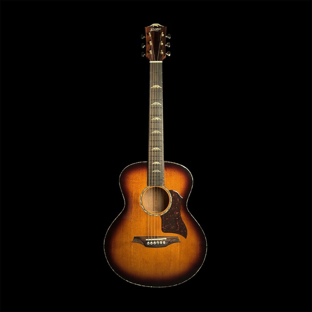 La chitarra BAN8E vs presenta un corpo Mini Jumbo che offre un eccellente equilibrio tra dimensioni e suonabilità, rendendolo una scelta popolare tra i musicisti. Il suo design compatto offre un comfort migliorato e un suono ricco e risonante che supera le aspettative. Con il top in abete massello 5A e il fondo e le fasce in okoumé fiammato 5A, le chitarre Mini Jumbo offrono una gamma tonale ricca di sfumature adatta a diverse situazioni musicali, dai falò con gli amici alle sessioni di songwriting in studio. Il manico in Mogano con 2 strisce di rinforzo in Ebano Amara, ha una forma a “V” morbida e monta una tastiera in Ebano Amara da 20 tasti Jumbo. Le decorazioni sono in Abalone e Madreperla con un ponte Mt. Bromo in Ebano Amara. Da notare il capotasto da 43 mm, la selletta e i pins in Osso nonchè il battipenna con forma ad aquila e motivo tartarugato con rivestimento simile al cristallo.