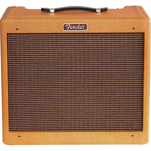 Il Blues Jr. Lacquered Tweed prende la perla da 15 Watt di Fender e le dona un trattamento realmente vintage con una copertura laccata in tweed e un cono da 12″ Jensen con sonorizzazione vintage. I suoi timbri dorati sono generati da un percorso di segnale interamente valvolare che utilizza una coppia di valvole finali EL84 e tre valvole preamplificatrici 12AX7. Aggiungete il rinomato riverbero Fender, i controlli flessibili, il selettore FAT per il mid boost, e il gioco è fatto. E guardate il pannello cromato, la finitura in tweed con griglia in tessuto marrone e dorata e i potenziometri di sapore vintage.