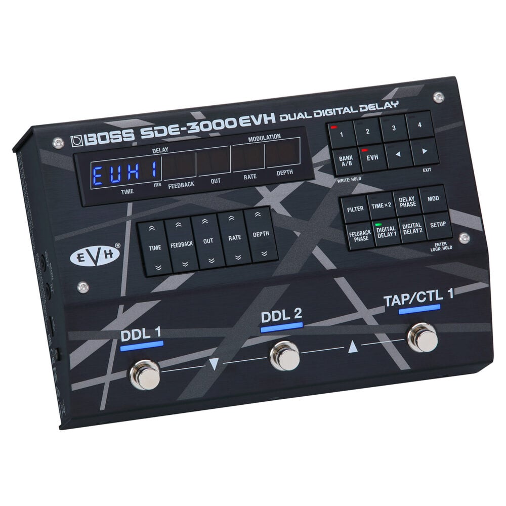 Pedale delay digitale BOSS SDE-3000EVH la replica più realistica dei delay stereo alla base dell’imponente suono live sul palco creato da Eddie Van Halen usando tre cabinet.