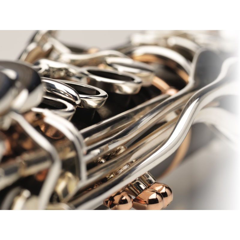 La meccanica del Lègende ha un’elegante finitura rose-gold e silver come gli strumenti realizzati per il 190esimo anniversario di Buffet Crampon, oltre ad una placca d’oro con inciso il nome dello strumento.