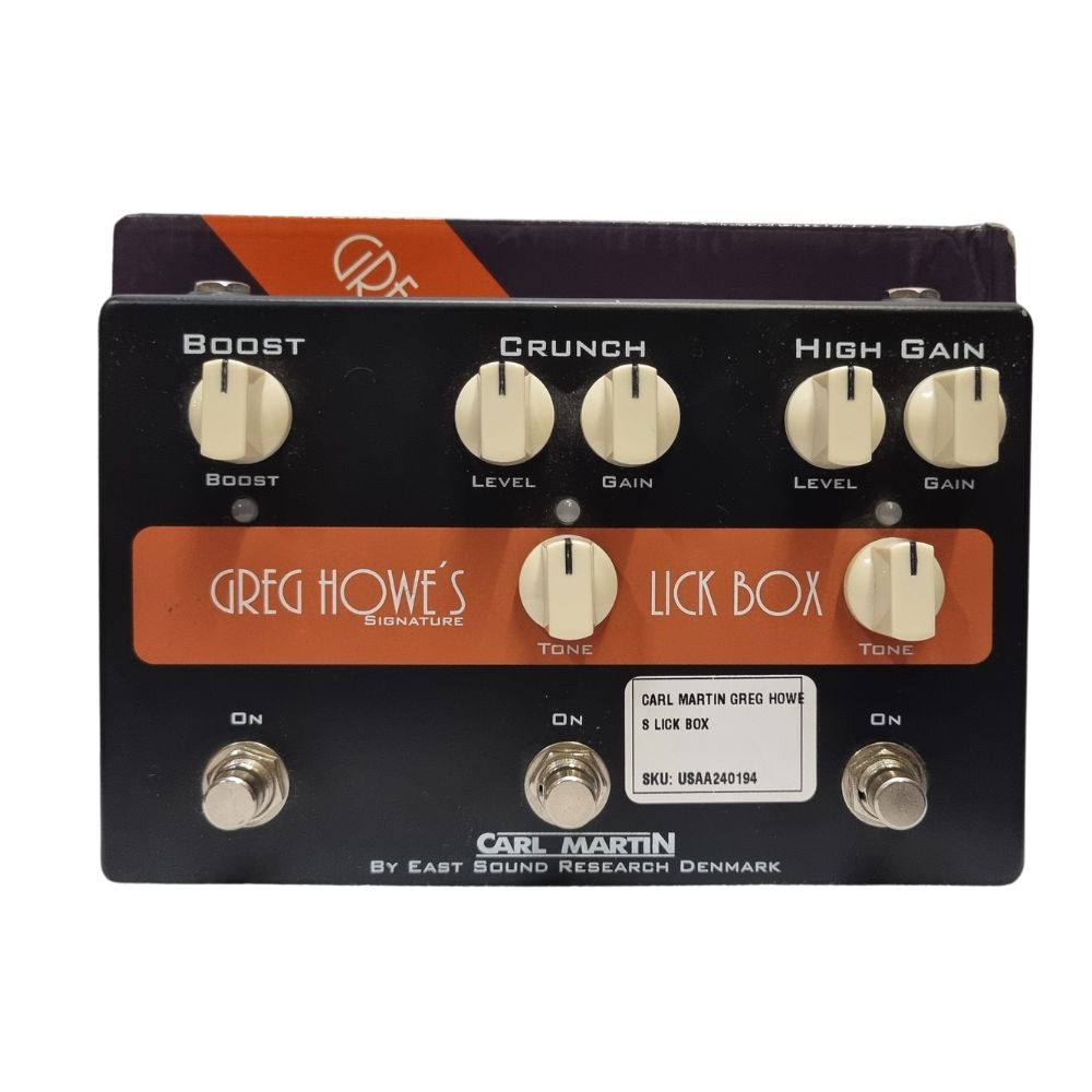 Greg Howe Signature Boost / Crunch / High Gain Overdrive – BOOST Section controller for boost – CRUNCH Section Controls for Level, Gain and Tone – HIGH GAIN Section Controls for Level, Gain and Tone – 3 bypass footswitch, one per section – 9 Volt 100mA Power In – Original Box – Made in Denmark