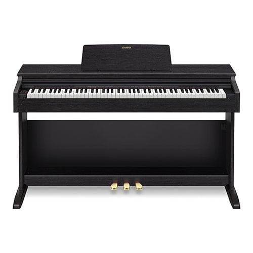 Casio AP-270 è un pianoforte digitale della seria CELVIANO dotato di suoni da pianoforti da concerto, tastiera a 88 tasti pesati con meccanica a martelli scalato a tre sensore ed una ricopertura stile ebano e avorio.