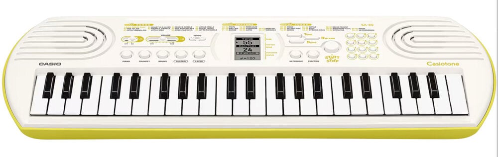 Facile da utilizzare e divertente da suonare: la scelta perfetta per la tua prima tastiera. Un corpo compatto ricco di toni, ritmi e funzioni. 10 brani integrati da riprodurre e di cui disattivare l’audio per suonare da soli la melodia: Inno alla gioia, Little brown jug, Minuetto in G maggiore, Twinkle twinkle little star, Yankee doodle, Lo schiaccianoci, Greensleeves, Jingle bells, Astro del ciel, Joy to the world