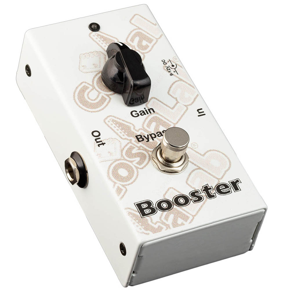 Il CostaLab Booster è il pedale che ha dato inizio all’esperienza del marchio CostaLab. E’ uno strumento importante per ogni chitarrista in quanto non solo serve ad aumentare il volume ma, più organicamente, serve per “spingere” sul dispositivo connesso a valle. Usandolo con un amplificatore a valvole si può passare ad esempio da un suono crunch a un potente e cremoso suono lead, sfruttando la sola dinamica dell’amplificatore. Allo stesso modo, esso può essere utilizzato per dare maggiore saturazione ad un overdrive. Per finire, il CostaLab Booster, se utilizzato a fine catena effetti, può essere anche utilizzato per alzare il proprio volume in fase di assolo. Essendo particolarmente silenzioso, esso può essere usato a livelli di guadagno elevati senza controindicazioni. Proprio per via della predisposizione all’utilizzo in situazioni del genere, il pedale è stato equalizzato in modo tale da avere una risposta leggermente velata sulle frequenze acute, con un sound caldo e morbido, che ricorda molto il suono prodotto dagli apparati a valvole. E’ noto infatti che con suoni distorti e ricchi di armoniche, l’aggiunta di un ulteriore stadio di guadagno comporta spesso la presenza di frequenze alte fin troppo sferraglianti, oltre all’aumento del rumore di fondo.