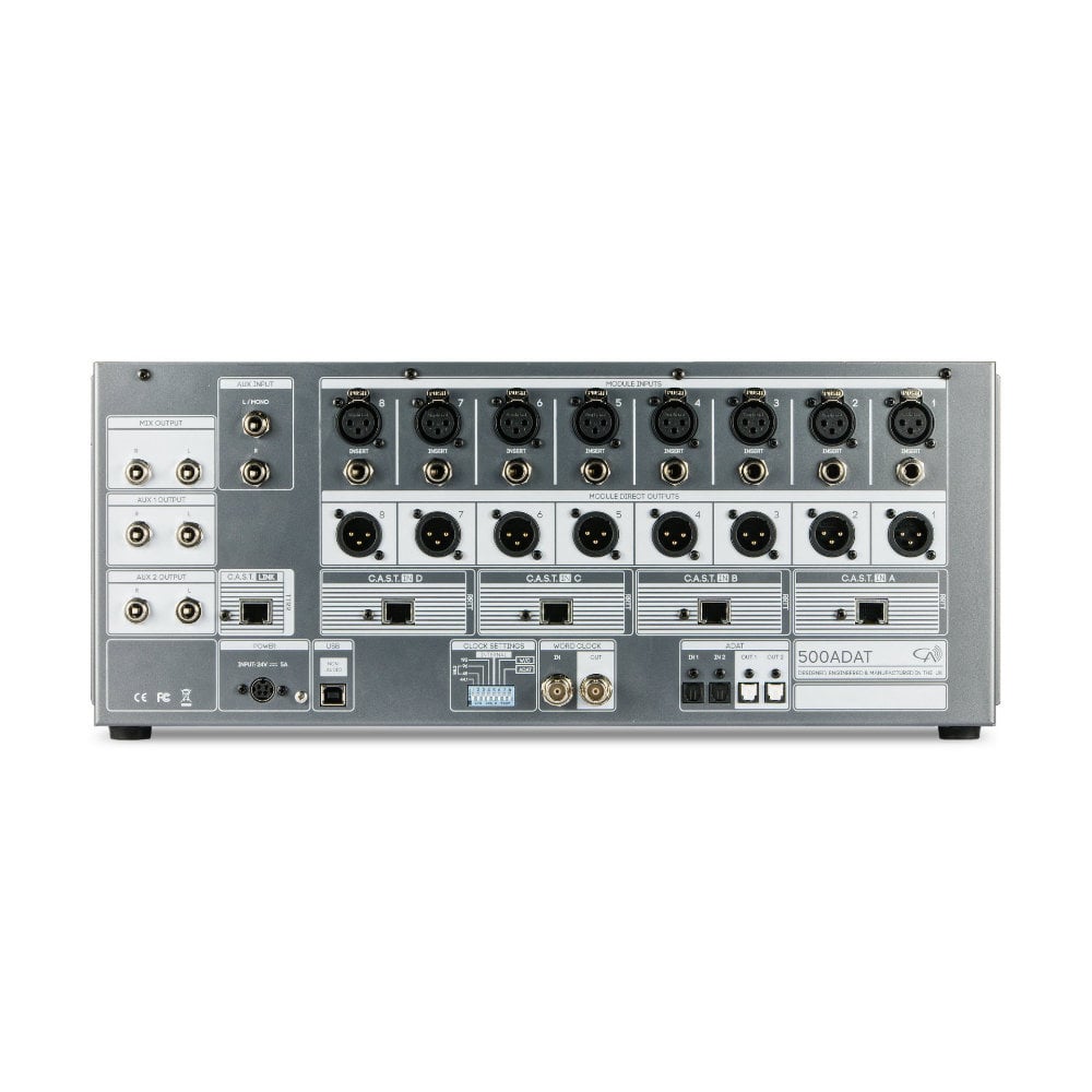 • I/O sufficienti per qualsiasi Hardware: è possibile integrare il 500ADAT con qualsiasi hardware analogico o digitale, ad esempio collegandolo al tuo convertitore o integrandolo con altre unità rack con gli insert TRS dedicati sugli slot.