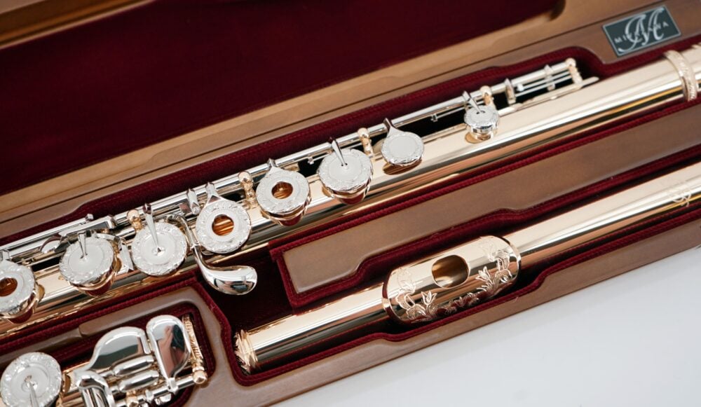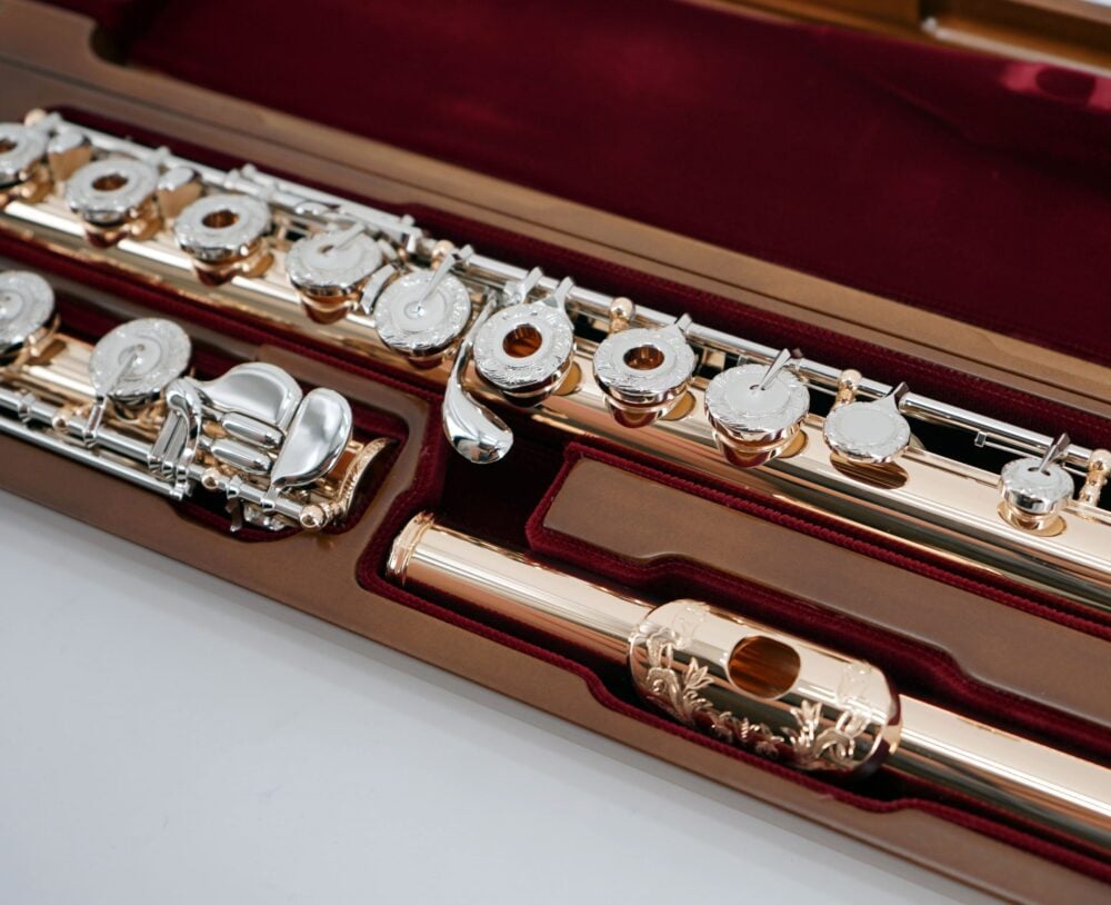 Flauto con testata e fusto in oro 14k, professionale, è realizzato in Giappone dalla rinomata fazienda Miyazawa.