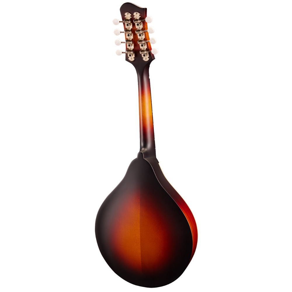 Mandolino A-Style con top in abete massello e fondo e fasce in acero massello per un suono ricco e definito. Il manico in acero è abbinato a una tastiera in ebano con raggio da 12″ e intarsi in madreperla. Monta pickup K&K Duotone per una resa amplificata naturale. Dotato di ponte compensato regolabile in ebano, meccaniche Proline J-105 e hardware in nichel.