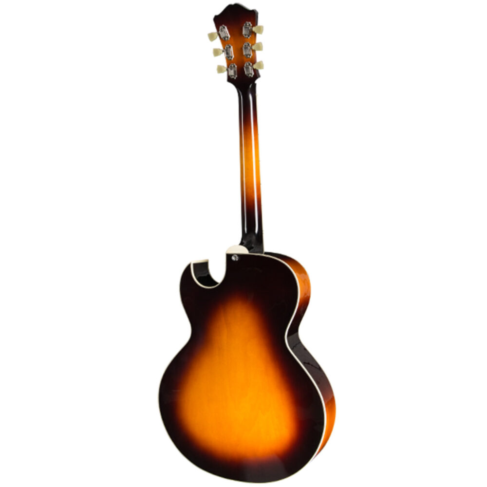 La Eastman Truetone AR372CE Sunburst è una jazzbox classica realizzata interamente in acero laminato ed una raffinata finitura Sunburst. Body interamente in acero laminato, manico in 3 pezzi di acero profilo Traditional Even C con tastiera in ebano intarsiata con split block pearl. Coppia di humbucker Kent Armstrong HPAG-1 con selettore a tre posizioni e controlli di tono e volume per ciascun pickup. Astuccio rigido incluso.