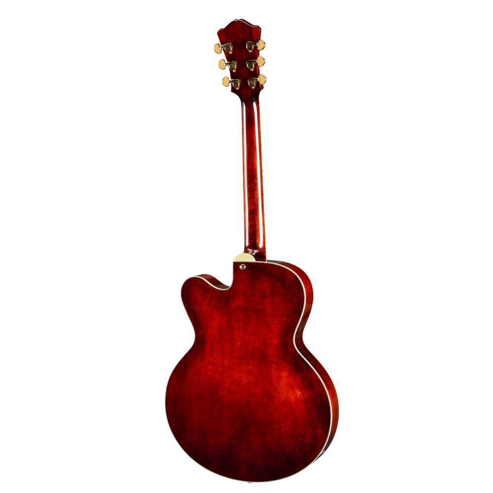 La Eastman AR403CED è una chitarra hollow body con top, fondo e fasce in acero laminato. Il manico in acero a tre pezzi con tastiera in ebano e profilo Traditional Even C con 20 tasti medium jumbo. Monta due pickup Kent Armstrong HPAG-1 con selettore a 3 vie, ponte e tailpiece in ebano regolabile, hardware nickel e finitura Truetone Gloss. Completata da binding in ivoroid, dot in madreperla e custodia rigida inclusa, unisce eleganza classica e versatilità sonora.