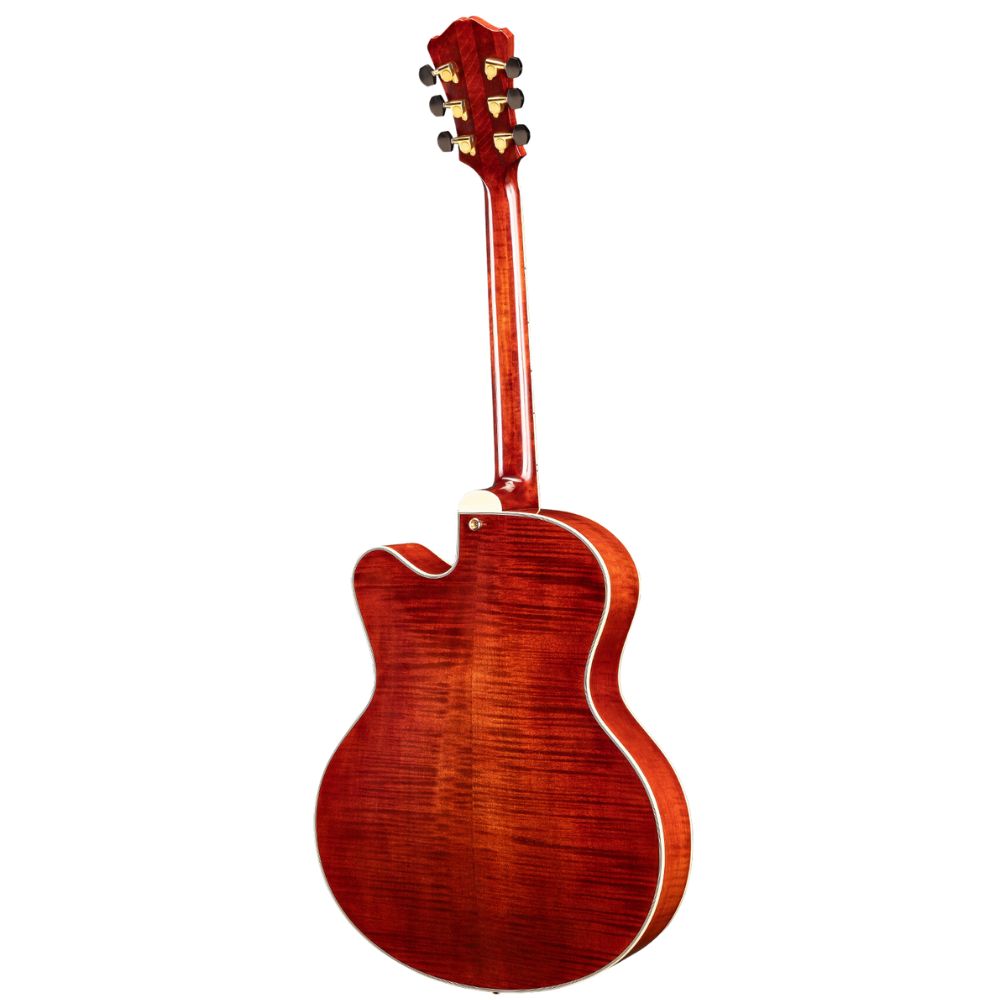 La Eastman Gloss AR810CE Classic FInish è una chitarra archtop in legno massello di altissimo livello. Il fondo e fasce sono ricavati da acero handcarved ed il top è in abete massello di pregevole caratura. Manico in acero con tastiera in ebano. Pickup Lollar Custom Wound Imperial per un suono cremoso ed avvolgente, Meccaniche Gotoh Gold per un accordatura particolarmente fine. Una jazz box di livello che non teme rivali. Hard case incluso.