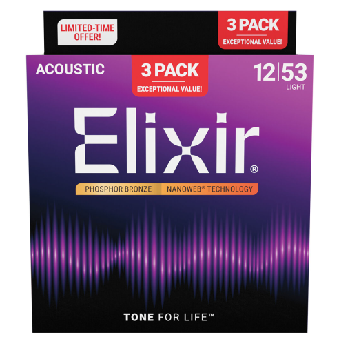 ELIXIR 3X PACK 16569 ACOUSTIC PHOSPHOR BRONZE NANOWEB