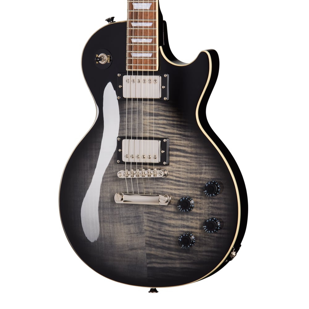 Epiphone Les Paul Tribute Plus offre qualità e stile per chi vuole iniziare o fare un upgrade senza compromessi. Corpo in mogano con top in acero fiammato AAA, manico SlimTaper anni 60 veloce e confortevole, tastiera in alloro con 22 tasti e intarsi trapezoidali. L’hardware LockTone garantisce stabilità e sustain, mentre i pickup humbucker 650R e 700T con magneti ceramici assicurano un suono pieno e deciso.