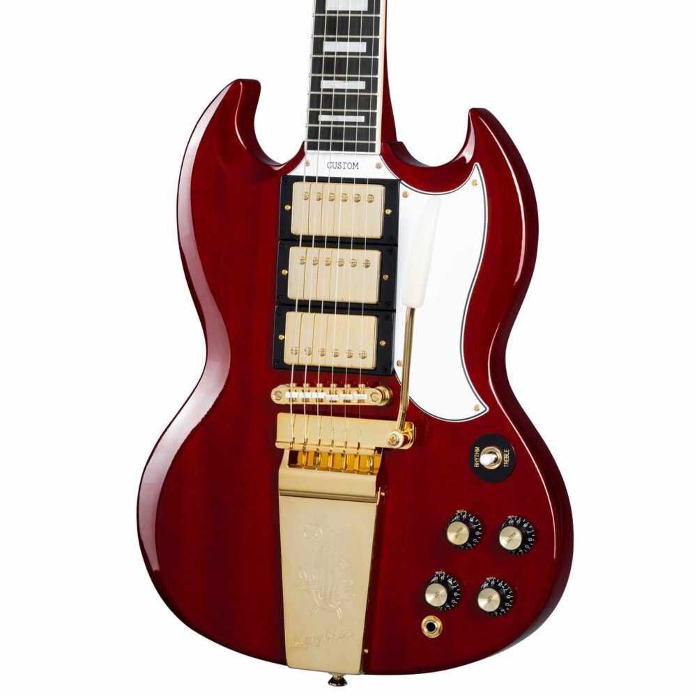 Chitarra elettrica Epiphone Joe Bonamassa 1963 SG Custom finitura Wine Red ispirata alla Gibson SG Custom del 1963 della collezione di Bonamassa. La SG Custom Joe Bonamassa 1963 di Epiphone ricrea fedelmente la magia di questa chitarra unica. Presenta lo stesso incastro liscio dell’articolazione del manico, una Maestro™ Vibrola™, la classica estetica SG Custom, dettagli placcati in oro e tre potenti pickup Epiphone ProBucker™. Include una custodia rigida Custom con interni in Peluche Goldenrod, grafica esterna Epiphone e Joe Bonamassa, e un certificato di autenticità.