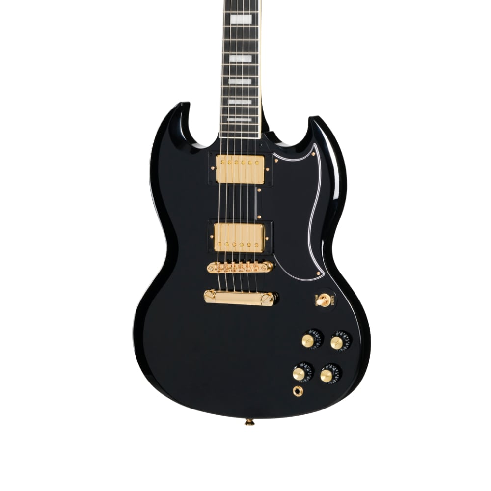 Elegante e potente, la Epiphone SG Custom fa parte della serie Inspired by Gibson e riprende lo stile “tuxedo” con corpo in mogano double cut, tastiera in ebano con intarsi blocco pearloid e hardware dorato. Il manico incollato ha profilo 1960 SlimTaper C per una suonabilità fluida, mentre i pickup ProBucker Custom offrono timbri SG ricchi e vintage. Ponte LockTone, meccaniche Grover e custodia premium inclusa completano questa SG raffinata e pronta per il palco.