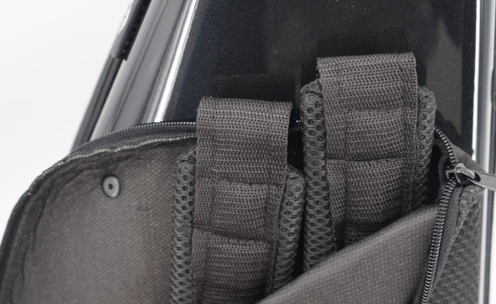 È dotato di spallacci ergonomici per un comodo trasporto come zaino, ideale per il trasporto in moto o bicicletta.