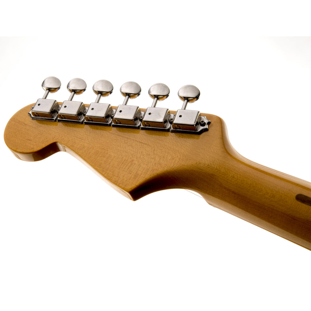 Chitarra elettrica Fender Eric Johnson Stratocaster® Maple finitura 2-color Sunburst sviluppata dietro precise indicazioni di Johnson che voleva regalare ai milioni di fan che ne hanno accompagnato la carriera uno strumento davvero speciale. Corpo in ontano in due pezzi con laccatura alla nitro molto sottile. Il manico, ricavato da un blocco unico di acero quartersawn, ha profilo a V, raggio di curvatura da 12” e 21 tasti lucidati. Le meccaniche vintage staggered eliminano la necessità dell’alberino abbassacorde sulla paletta. Tra le altre caratteristiche ricordiamo il battipenna stile ’57, il ponte tremolo con 4 molle privo di copertura per la cavità posteriore.