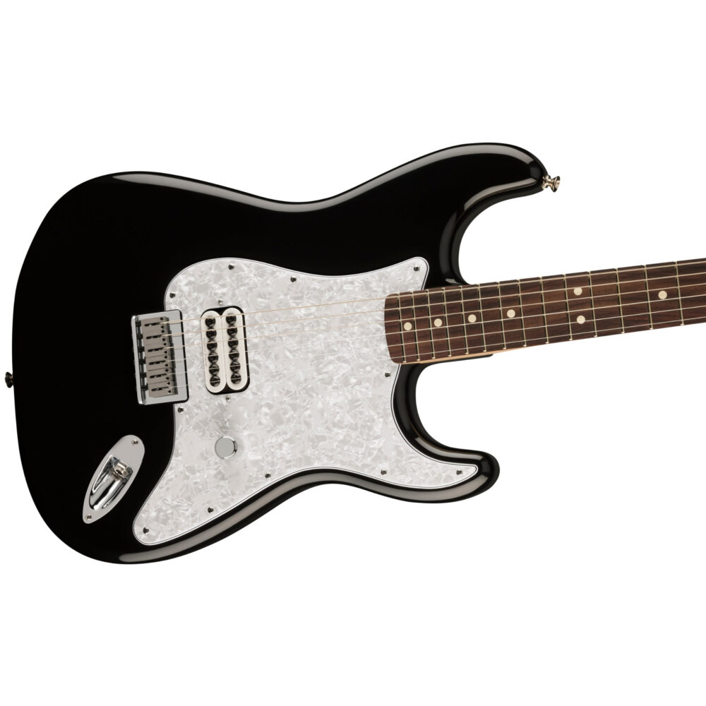 Chitarra elettrica Fender Stratocaster® Limited Edition Tom DeLonge realizzata in collaborazione con il chitarrista dei Blink-182. Questa iconica Strat® torna appena in tempo per il tour di reunion dei Blink e l’attesissima pubblicazione del loro ultimo album. La Stratocaster Tom DeLonge è equipaggiata con un humbucker Seymour Duncan® Invader™ dall’uscita caldissima e timbriche turbo, perfetto per massicci power chord e riff distorti. Ma non è solo una questione di potenza: i controlli essenziali consistono di un singolo volume master, combinato con un circuito “treble bleed” che preserva la naturale gamma acuta della chitarra, assicurando suoni clean brillanti e timbriche scampanellanti, sull’orlo della distorsione. Il comodo manico con profilo Modern “C” è dotato di tasti medium jumbo su una tastiera con raggio da 9.5″ (24,13 cm) in palissandro, dal feeling moderno e dalla suonabilità superiore. Altri importanti dettagli includono le meccaniche in stile vintage e un ponte fisso Stratocaster con sellette a blocchetto per un look classico, un’intonazione superiore e una migliore stabilità dell’accordatura. Una piastra del manico Tom Delonge appositamente realizzata è decorata con una grafica originale eseguita da Delonge.