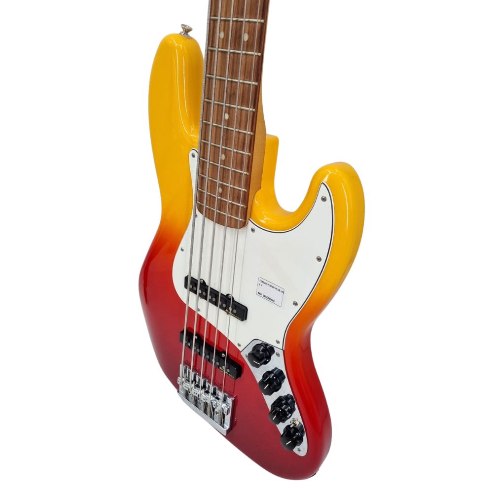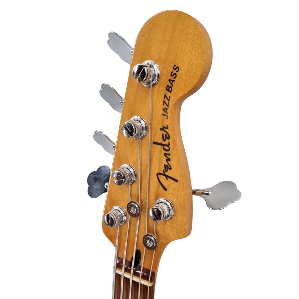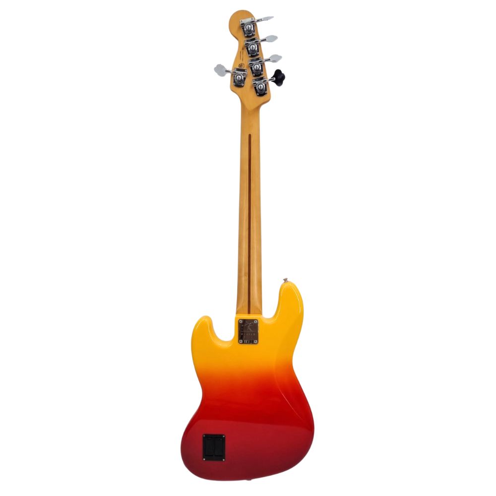 2021 – Made in Mexico – Tequila Sunrise finish – Alder body – Maple neck with Modern “C” shape – Pau Ferro or Maple fingerboard, 12″ radius, 20 Medium Jumbo frets – 34″ scale length – 1.875″ nut width – Player Plus Noiseless™ Jazz Bass pickups (bridge and middle) – Active 3-band EQ with Active/Passive mini toggle – Master Volume, Pan Pot, Treble/Mid/Bass Boost/Cut controls – Fender HiMass™ bridge with Chrome-Plated Zinc Saddles – Nickel/Chrome hardware – Standard Open-Gear tuning machines – 3-Ply Mint Green pickguard – Vintage-Style Black Plastic Jazz Bass control knobs – Deluxe Gig Bag included – Made in Mexico