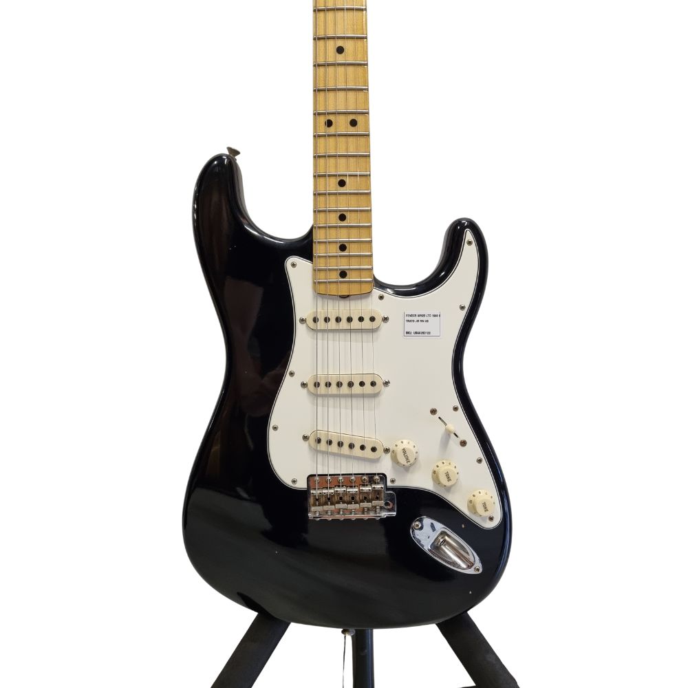 Made in USA – 2023 – Journeyman Black -2-Piece Select Alder Body – Journeyman Lacquer Finish – Quartersawn Maple 1963 “C” Neck – Maple Fingerboard 25.5″ Scale – 7.25-9.5″ Compound Radius – 21 Narrow Tall 6105 Frets – Bone Nut – Dot Inlays – Volume – Tone – Tone – 5-Way Switch – Fat ’50s 1/2 Blender – Strat Wiring Vintage Tremolo Bridge – Schaller “F” Tuners – 3-Ply Parchment Pickguard – Original hard Case and COA