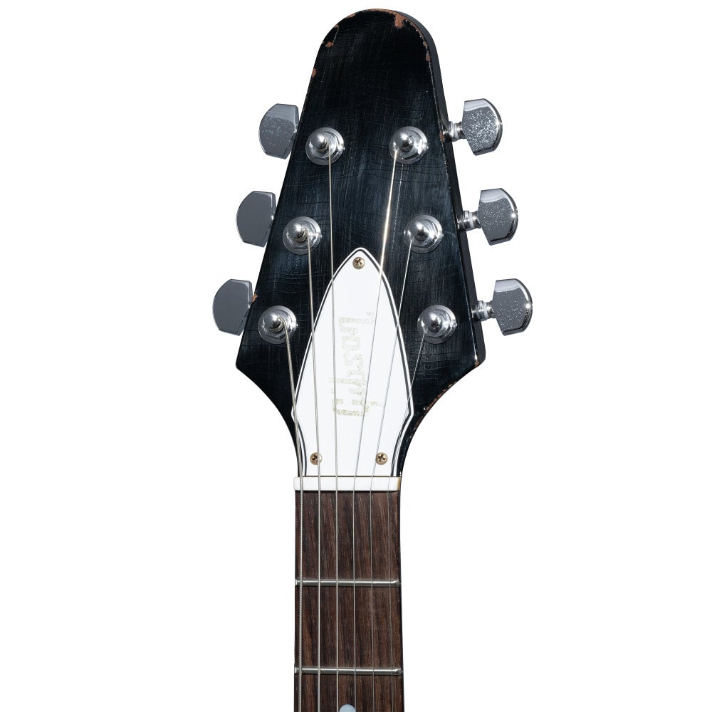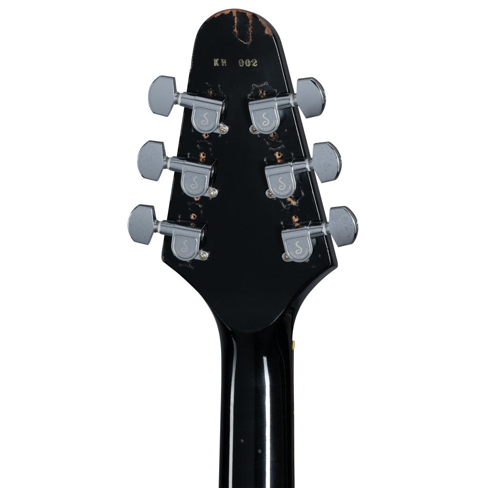 La Gibson Kirk Hammett 1979 Flying V è una custom shop limited edition che replica con estrema fedeltà la chitarra con cui il chitarrista dei Metallica si è avvicinato al mondo Gibson utilizzandola in dischi come Kill ‘Em All, Ride the Lightning, Master of Puppets, …And Justice for All ed il Black Album. Realizzata in appena 200 esemplari in tutto il mondo dai mastri liutai del Gibson Custom Shop di Nashville ha un trattamento aged del Murphy Lab. Incluso il certificato di autenticità firmato da Kirk Hammet in persona.