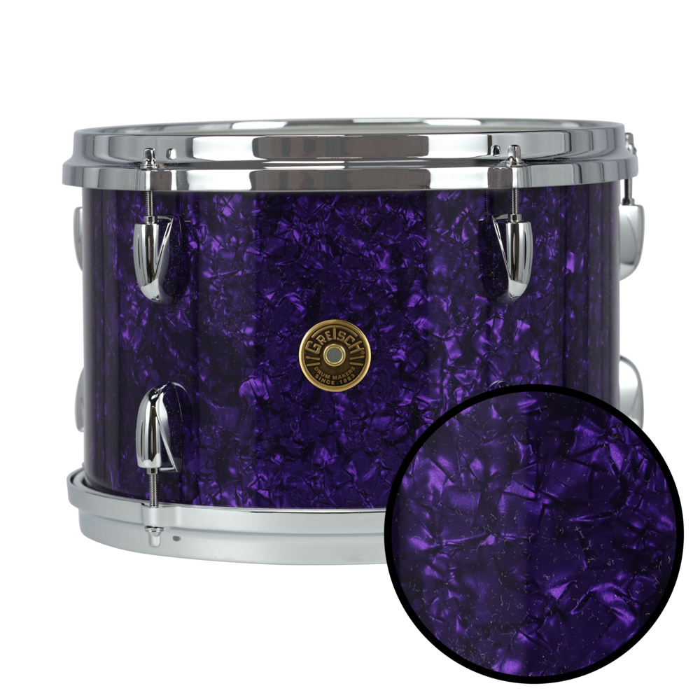 Batteria Gretsch con fusti in acero e pioppo nordamericano a 3 strati, rifiniti con interno Silver Sealer per migliorare la risonanza. I bordi “Roundover” donano un’estetica elegante e confortevole. Include grancassa 20″x14″, tom 12″x8″ e timpano 14″x14″ con sospensione GTS per un suono bilanciato. Finitura Nitron nel colore Purple Marine Pearl, con cerchi “302” a doppia flangia da 3 mm e gambe telescopiche per stabilità. Supporto tom singolo GTH-SLC incluso.