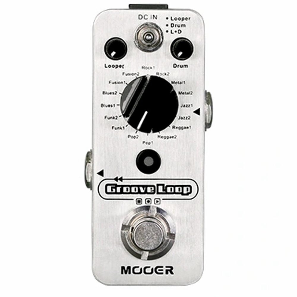 Il MOOER GROOVE LOOP riunisce sia il MICRO LOOPER che il MICRO DRUMMER in un unico micro pedale, per ottenere il massimo in termini di portabilità durante le jam session. Entrambi gli elementi possono essere utilizzati indipendentemente l’uno dall’altro o contemporaneamente. Quando vengono utilizzati contemporaneamente, il looper si sincronizza automaticamente per mantenere il tempo con il groove di batteria selezionato e, durante la registrazione del primo loop, viene riprodotto un clic introduttivo per assicurarsi di iniziare a suonare a tempo con il groove. Il pulsante tap tempo rende molto facile la regolazione della velocità del groove e i controlli indipendenti del livello di riproduzione sia per la batteria che per il looper assicurano che GROOVE LOOP sia facilissimo da impostare e regolare al volo.
