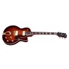 La serie Aristocrat HH P90 propone una serie di strumenti con camere tonali costruiti in mogano solido sapientemente lavorato, il top in abete arcuato ( Curved) garantisce sustain e ricchezza timbrica. Il corpo ha un Binding in ABS , il manico in mogano ( con profilo C) ha un nut (capotasto) di 43 mm in osso con tastiera in Pau Ferro con inlay block in madreperla, il binding è in ABS avorio. Lo strumento con scala 629 mm ha una dotazione di tutto rispetto, le meccaniche Guild sono aperte in stile Vintage, il battipenna è a 4 strati N/B/N/B, il ponte è tune o matic con cordiera corta, sono entrambi dorate. La parte elettronica comprende i pickup Franz P90 che donano a questa chitarra un suono grosso e cattivo ideale per rock, R&B i Pickup furono istallati su molti modelli Guild negli anni 70 e furono prodotti dalla compagnia Franz di New York.I controlli sono un Toggle switch e quattro potenziometri per gestire al meglio le potenzialità timbriche dello strumento. La costruzione è in ALNiCo 5 su una bobina a base larga, produce un suono cristallino , generoso ricco di sustain dalla timbrica Vintage adatto ad ogni stile. Altre caratteristiche: finitura poliuretanica lucida Vintage Sunburst classica e battipenna in celluloide a 4 strati B/N/B tartarugata.