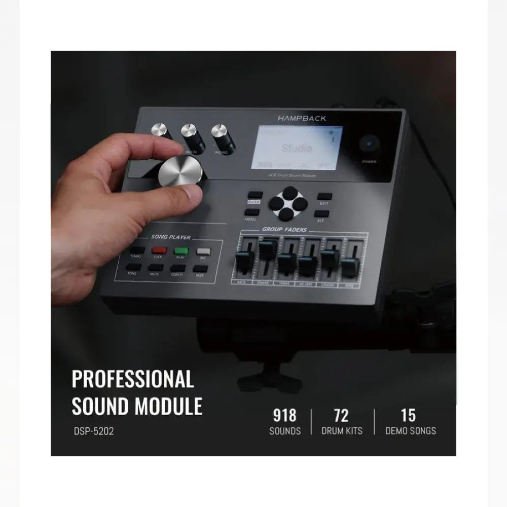Il set di batteria elettronica ACE-530 HAMPBACK è un kit avanzato composto da 9 pezzi, ideale per musicisti che cercano realismo e flessibilità. È dotato di pad a doppia zona, piatti crash soffocabili, un supporto hi-hat fisico e un pedale per la cassa, offrendo un’esperienza di gioco autentica simile a quella di una batteria acustica, con i vantaggi della tecnologia moderna.