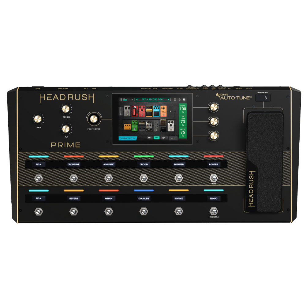 Pedaliera multieffetto Headrush Prime Dotato di un avanzato processore multi-core con una vasta libreria di effetti per chitarra, emulazioni di amplificatori, casse e microfoni incorporati, clonazione intelligente di amplificatori/pedali e caricamento di file IR, looper best-in-class e una suite completa di effetti vocali (inclusi l’Antares Auto-Tune, lo standard del settore), HeadRush® Prime è la pedaliera FX processor più potente, versatile e dal suono realistico di sempre.