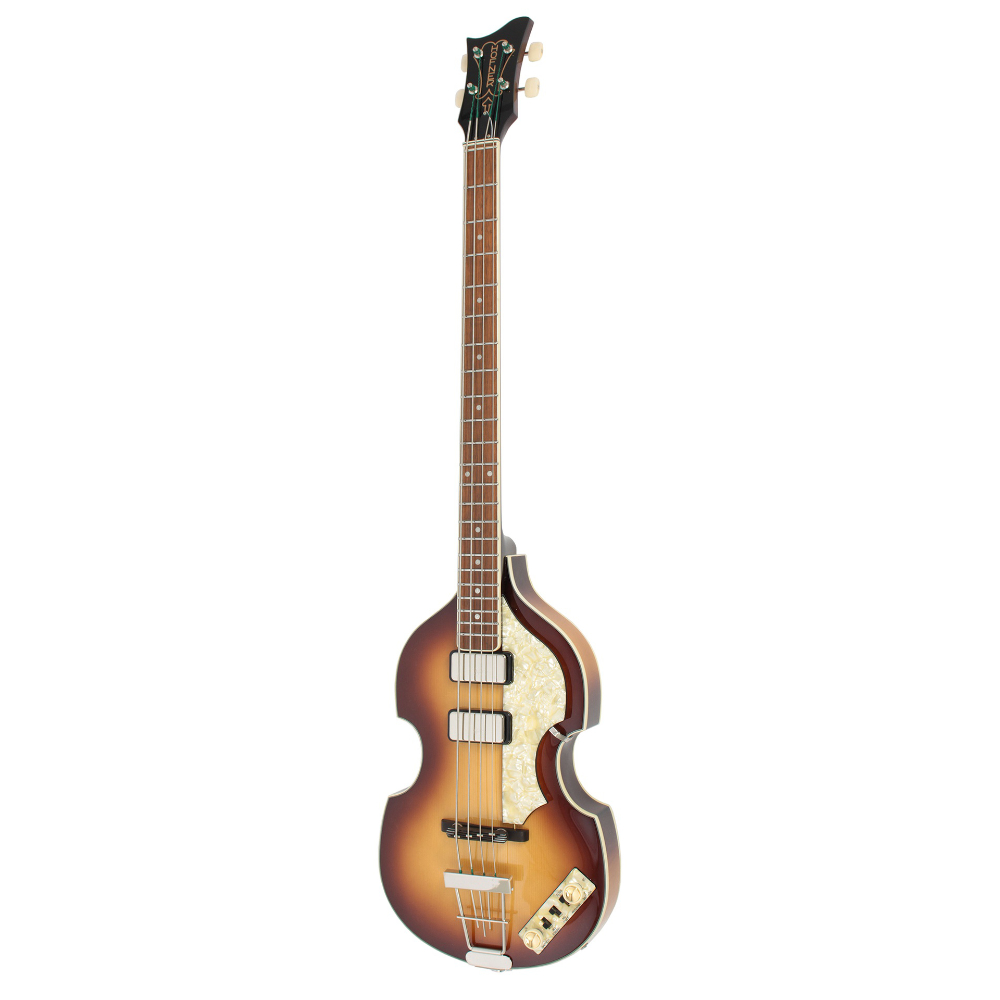 Basso semi-hollow Höfner con sustain block per un suono profondo e moderno, pickup staple, Top in abete e Finish Sunburst.