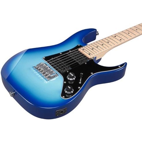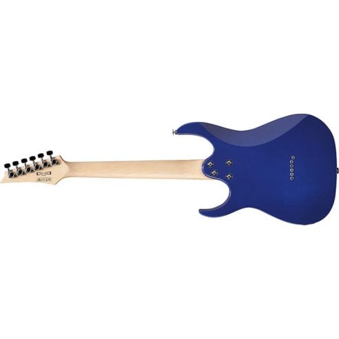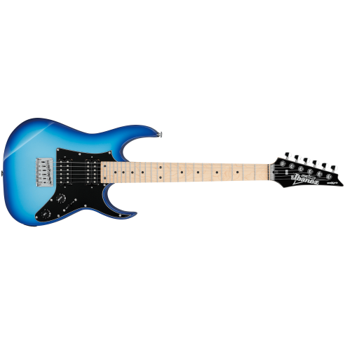 IBANEZ GRGM21M-BLT è una chitarra elettrica solid body a scala ridotta, modello Ibanez GIO Mikro GRGM21M con corpo in Pioppo, manico in Acero, tastiera in Acero a raggio 16” con 24 tasti Medium ed intarsi Black Dot, capotasto da 41mm in plastica PPS, hardware Chrome, meccaniche pressofuse e ponte fisso Ibanez F106. L’elettronica a configurazione HH, consiste in 2 pickup Humbucker Ibanez Infinity R Passive/Ceramic al ponte e al manico, con controllo Master Volume, controllo Master Tone e selettore pickup a 5 vie.