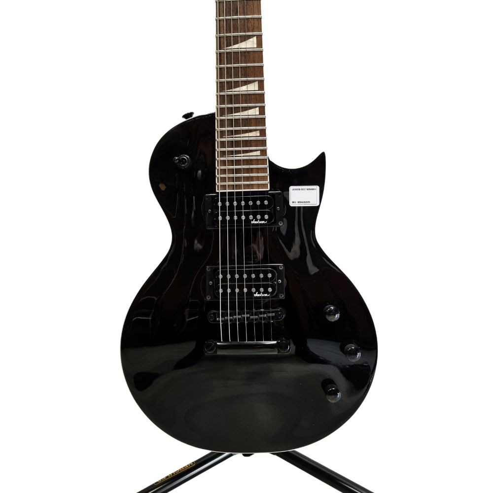 Made in Indonesia – 2020 – Gloss Black – Mahogany Body – Glossy Finish – Laurel Fretboard – 25.5″ Scale length -24 Medium Jumbo Frets – FJackson Tune-O-Matic – Jackson Sealed Die-Cast Tuners – Jackson Humbucker Neck and Bridge Pickups- 2x Volume, Tone, 3-Way Selector Controls – No Bag