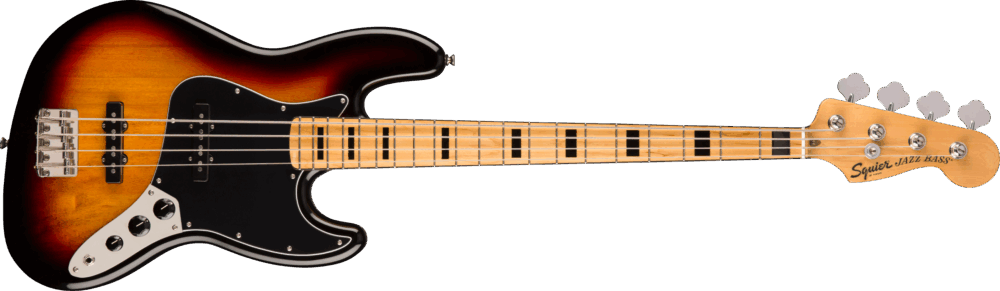 The Classic Vibe ’70s Jazz Bass® is a nod to the 1970s evolution of the J Bass®, combining the luxurious playability that made it famous with the versatility and massive tone of its dual Fender-Designed alnico single-coil pickups. Player-friendly features include a slim, comfortable “C”-shaped neck profile with an easy-playing 9.5″-radius fingerboard and narrow-tall frets, as well as a vintage-style bridge with slotted barrel saddles for solid string stability. This throwback Squier model also features 1970s-inspired headstock markings, rich-looking nickel-plated hardware and a slick vintage-tint gloss neck finish for an old-school vibe.