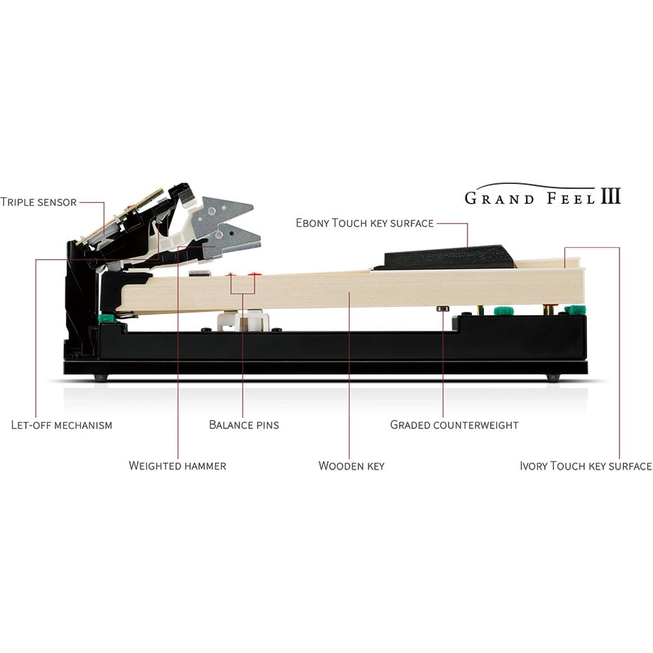 - Superficie tasti Ebony & Ivory Touch,3 sensori, simulazione doppio scappamento, contrappesi