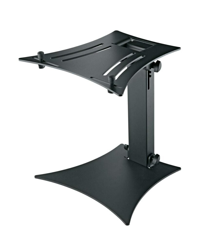 Supporto pieghevole edi poco ingombro K&M per laptop è da considerarsi la soluzione perfetta per ogni DJ e musicista in viaggio.