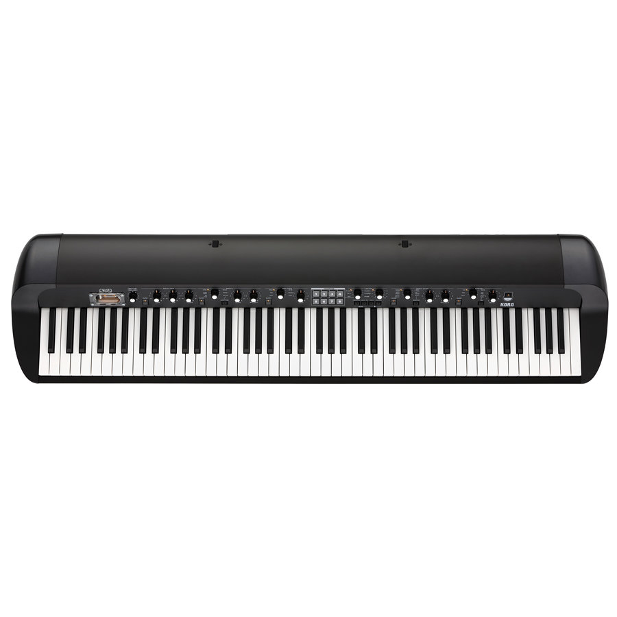 Pianoforte digitale da palco KORG SV-2 88 con tastiera pesata da 88 tasti. KORG SV-2 ultimo nato della serie Stage Vintage è disponibile in due modelli, versione 88 e 73 tasti, e due ulteriori modelli sempre 88 e 73 tasti dotati di un efficiente sistema di amplificazione interna K-ARRAY. Questi strumenti utilizzano le risorse tecnologiche KORG di ultima generazione caratterizzate da elevata quantità di memoria, ampia articolazione polifonica, grande numero di Preset, estese possibilità di controllo, e prestazioni estremamente avanzate; in definitiva tutto ciò che si può desiderare in un pianoforte digitale Stage professionale. Con SV-2 Stage Vintage Piano. KORG è riuscita a riunire in un singolo strumento: carattere timbrico peculiare, coinvolgente esperienza esecutiva, ed un design elegante e riconoscibile, come nessun altro costruttore prima d’ora.