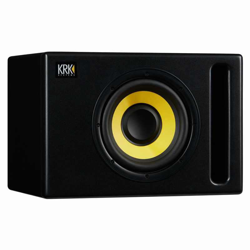 Subwoofer KRK S8.4 perfetto per essere accoppiato a due monitor per l’ascolto in studio. Controllo remoto per il bypass per attivare o disattivare velocemente il sub durante l’ascolto e il mixing.