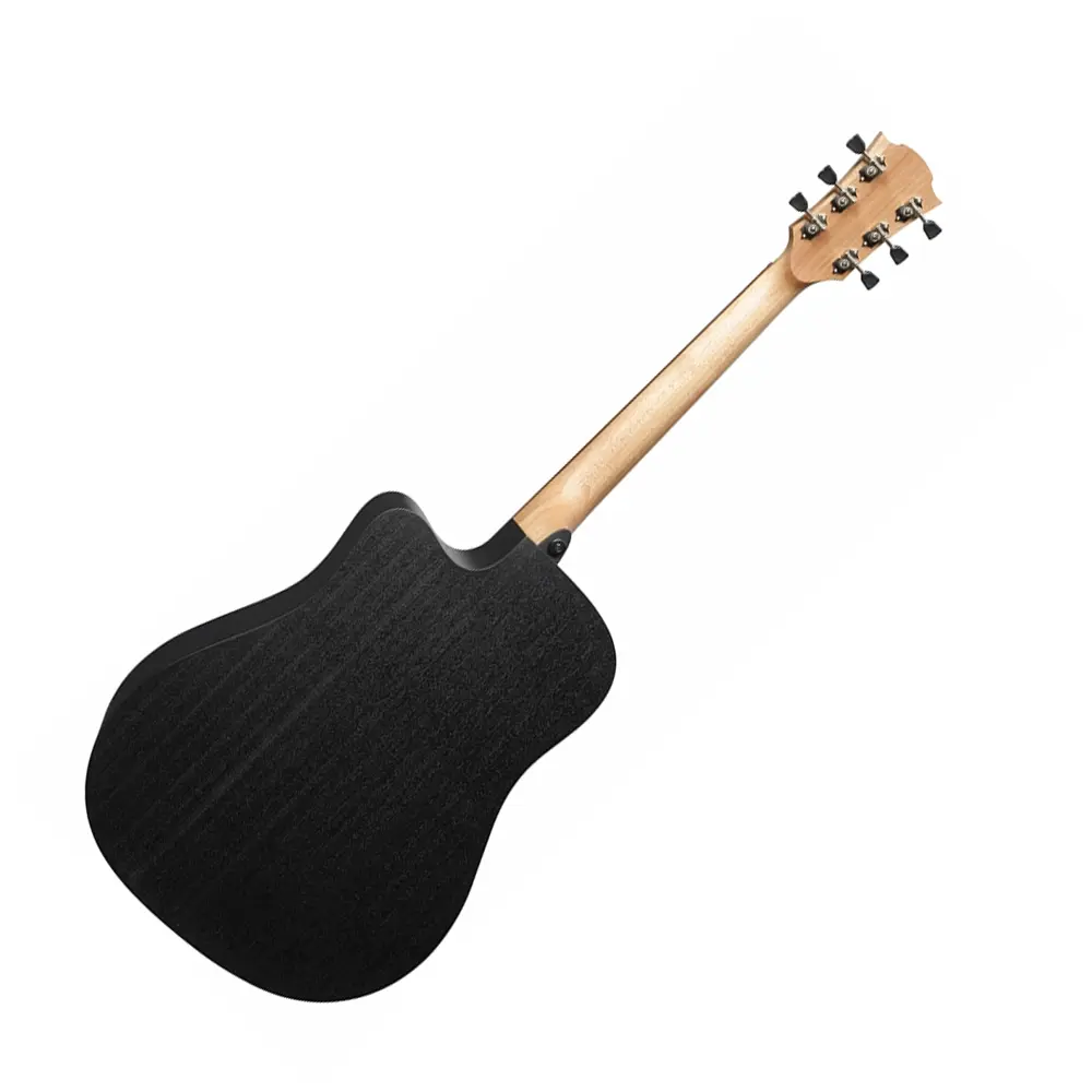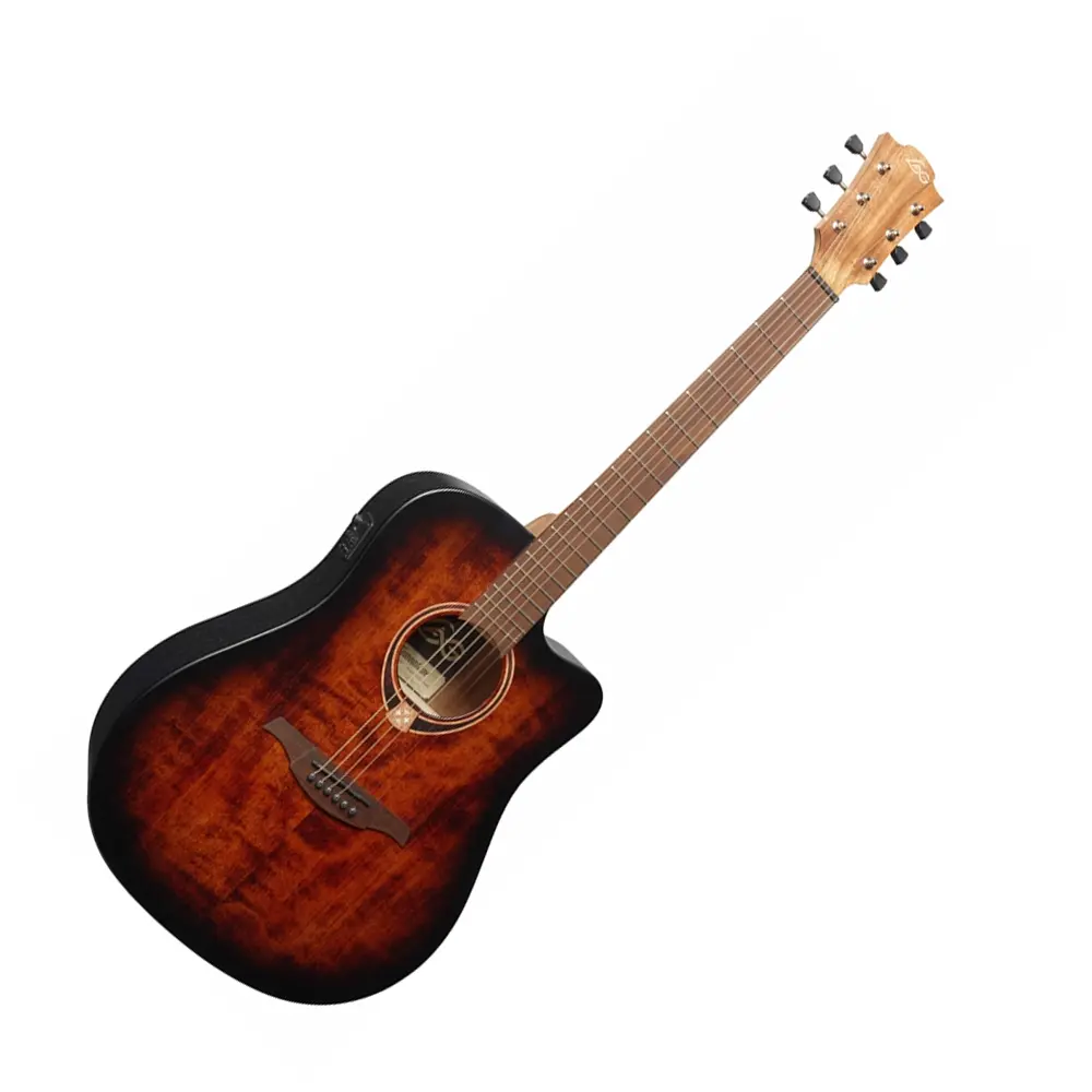 La T98D è la chitarra acustica in formato Dreadnought della serie Tramontane 98 di Lag, che presenta un corpo in Mogano Khaya con top massello. Il ponte e la tastiera sono realizzati in Branko Wood, un legno ecologico e resistente a cambiamenti di temperatura e umidità realizzato dalla Blackwood Tek.