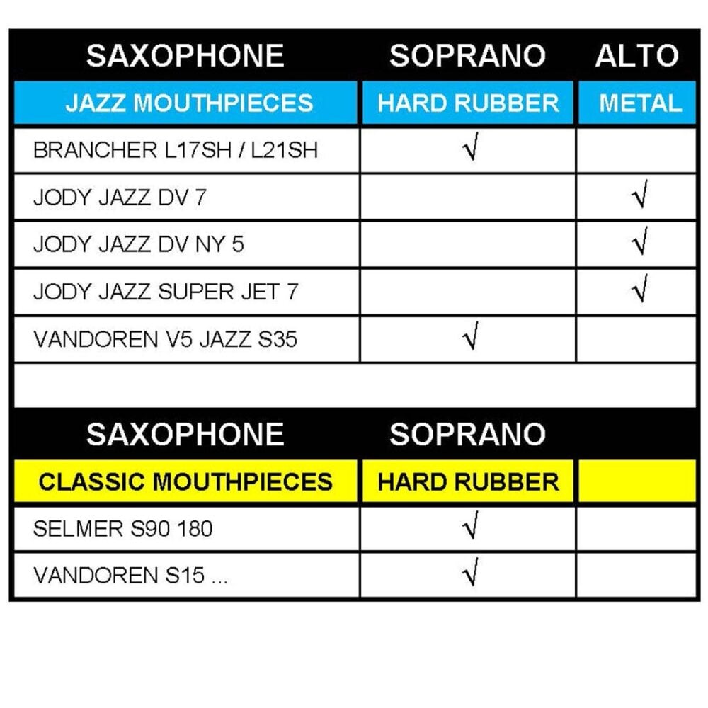 Legatura flessibile. Fornisce un tono rotondo e caldo ed è coerente in ogni registro per il sassofonista soprano.